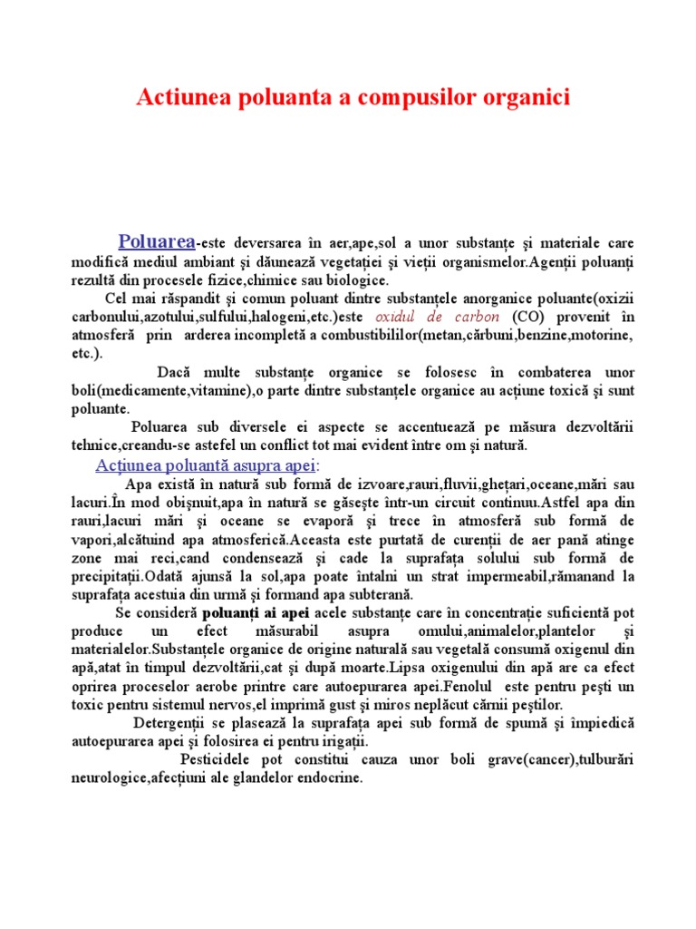 Referat Actiune Poluanta A Compusilor Organici 355127 Graduo