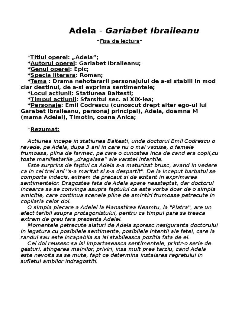 Fisa De Lectura Adela Doc