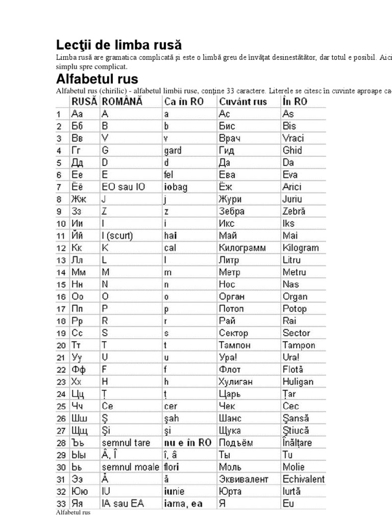 Alfabetul Rusesc Tradus In Romana