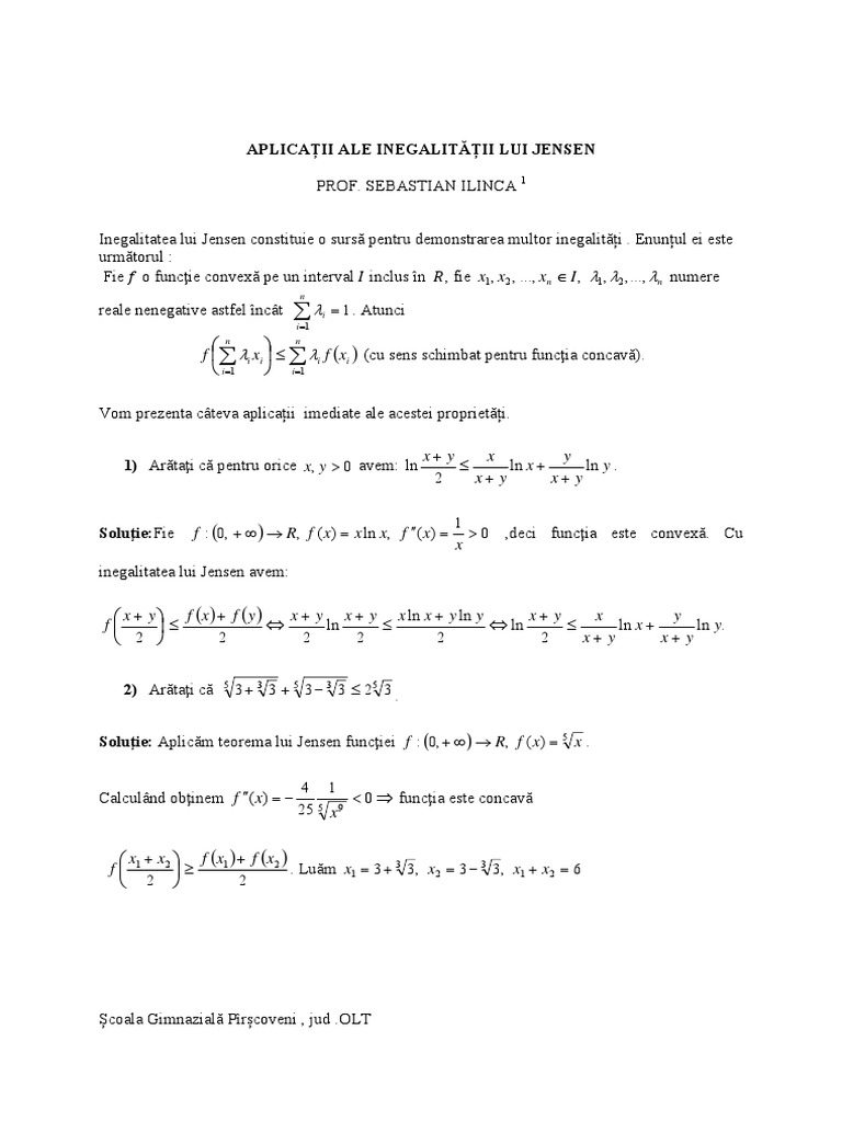 Aplicatii Inegalitatea Jensen