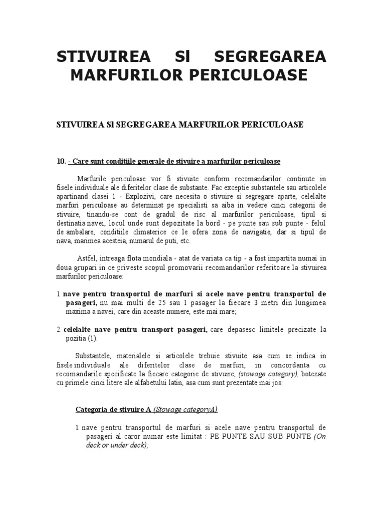 Stivuirea Sl Segregarea Marfurilor Periculoase Doc