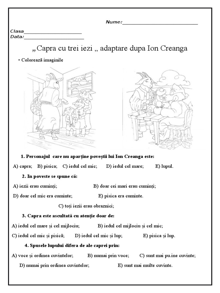 Fise De Lucru Gradinita Iedul Cu Trei Capre De Octav Pancu Iasi