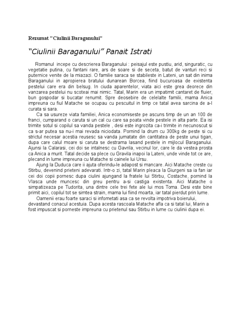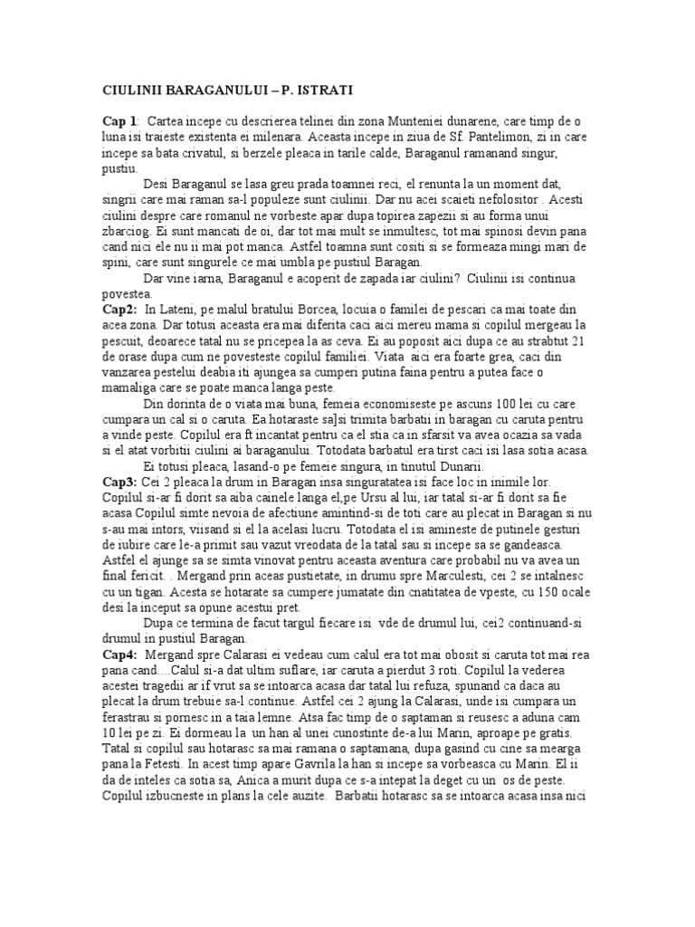 Ciulinii Baraganului Rezumat Referate Wyz Ro