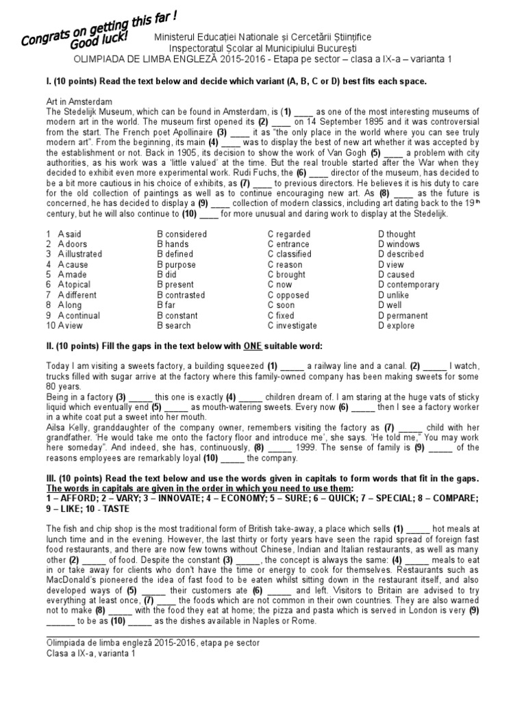 Concursul De Limba Engleză Faza Zonală Februarie 2013 Clasa A Ix