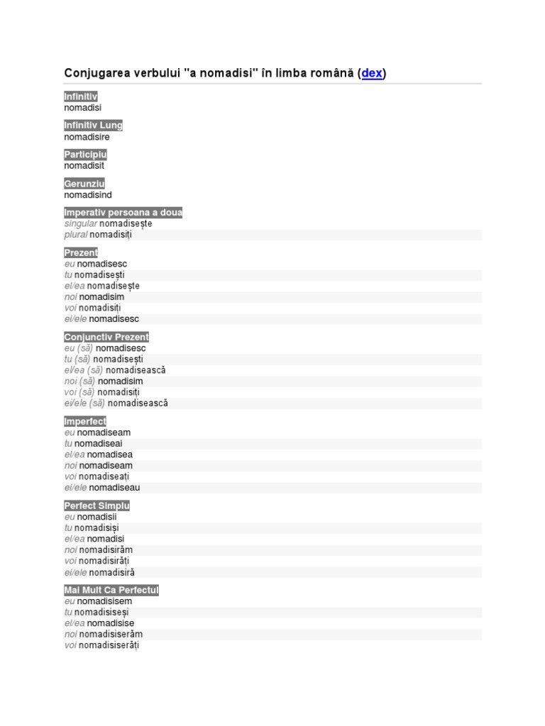 Conjugarea Verbului A Nomadisi In Limba Romană Infinitiv