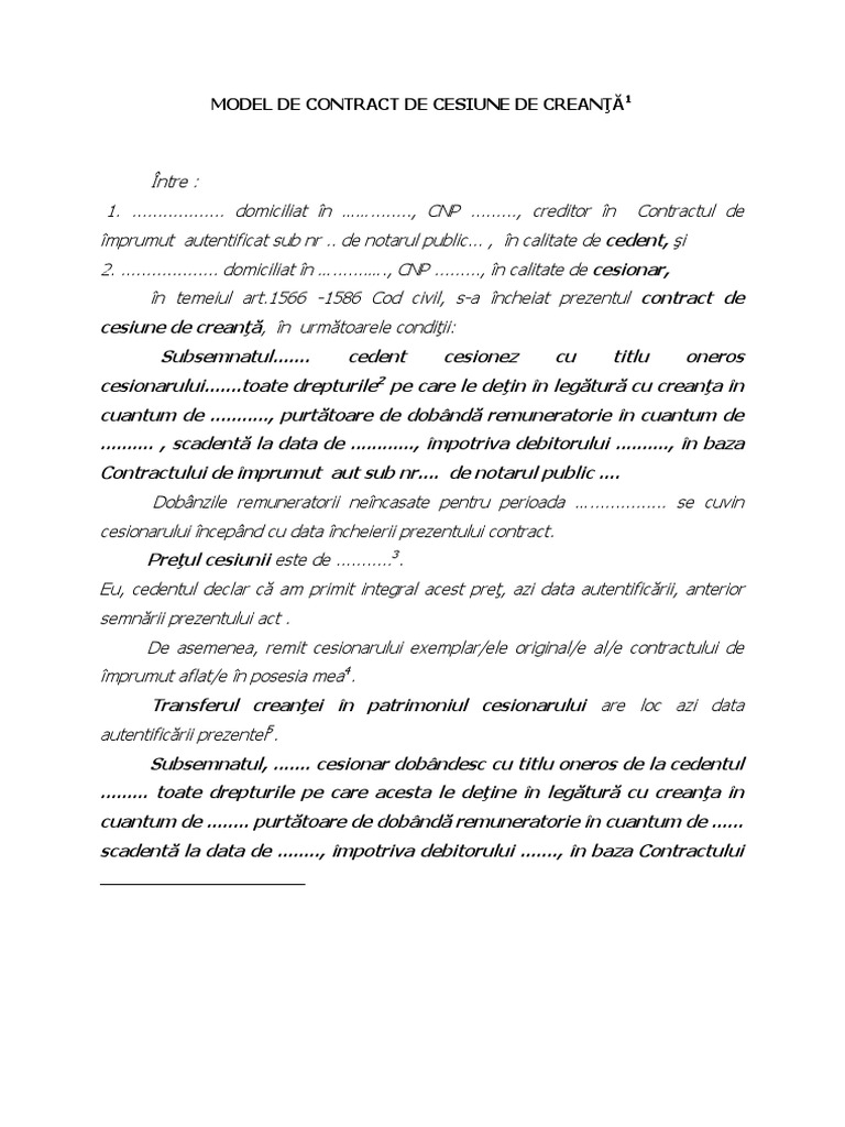 Download Contract Cesiune De Creanta