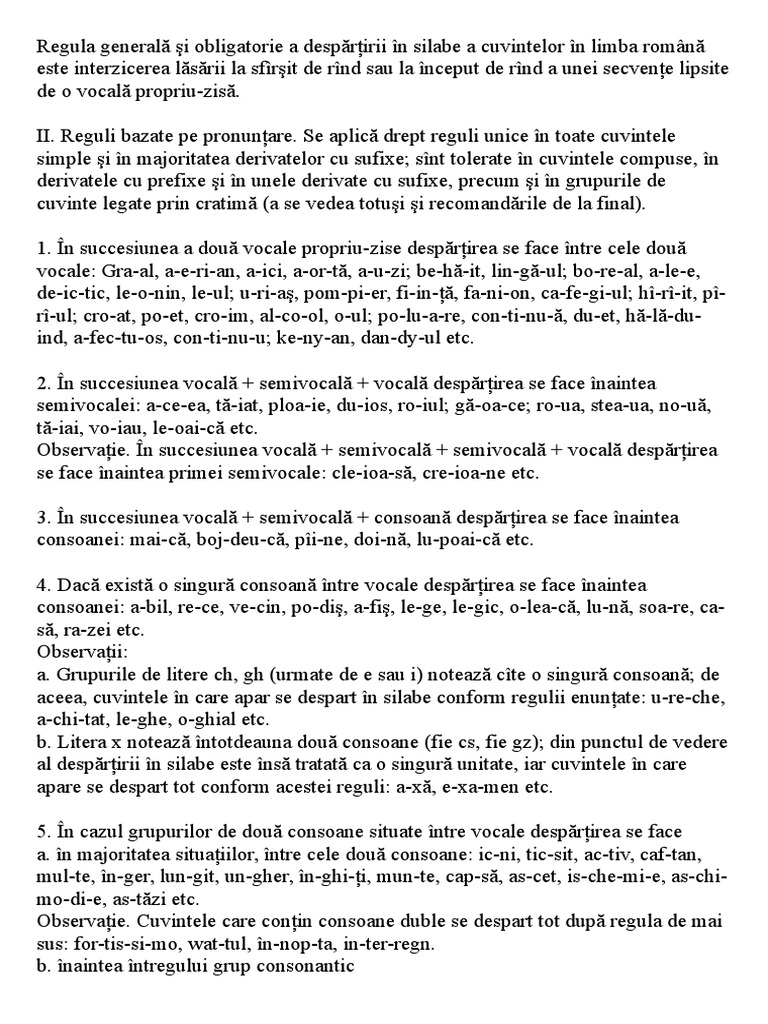 Ortografia Limbii Romane Despartirea In Silabe