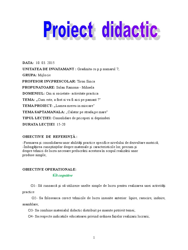 Doc Proiect Didactic Dpm Anamaria Mihai Academia Edu