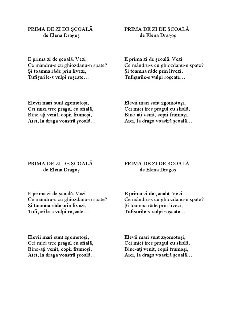 Prima Zi De Scoala Elena Dragos