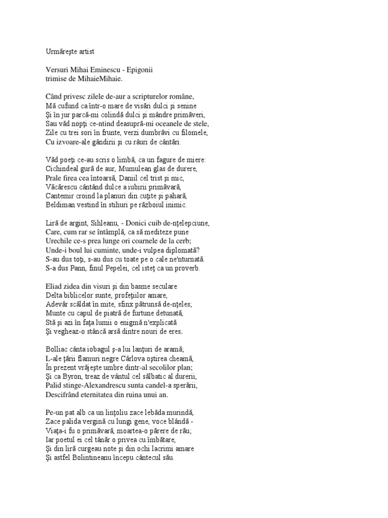 Referat Mihai Eminescu Epigonii 329253 Graduo