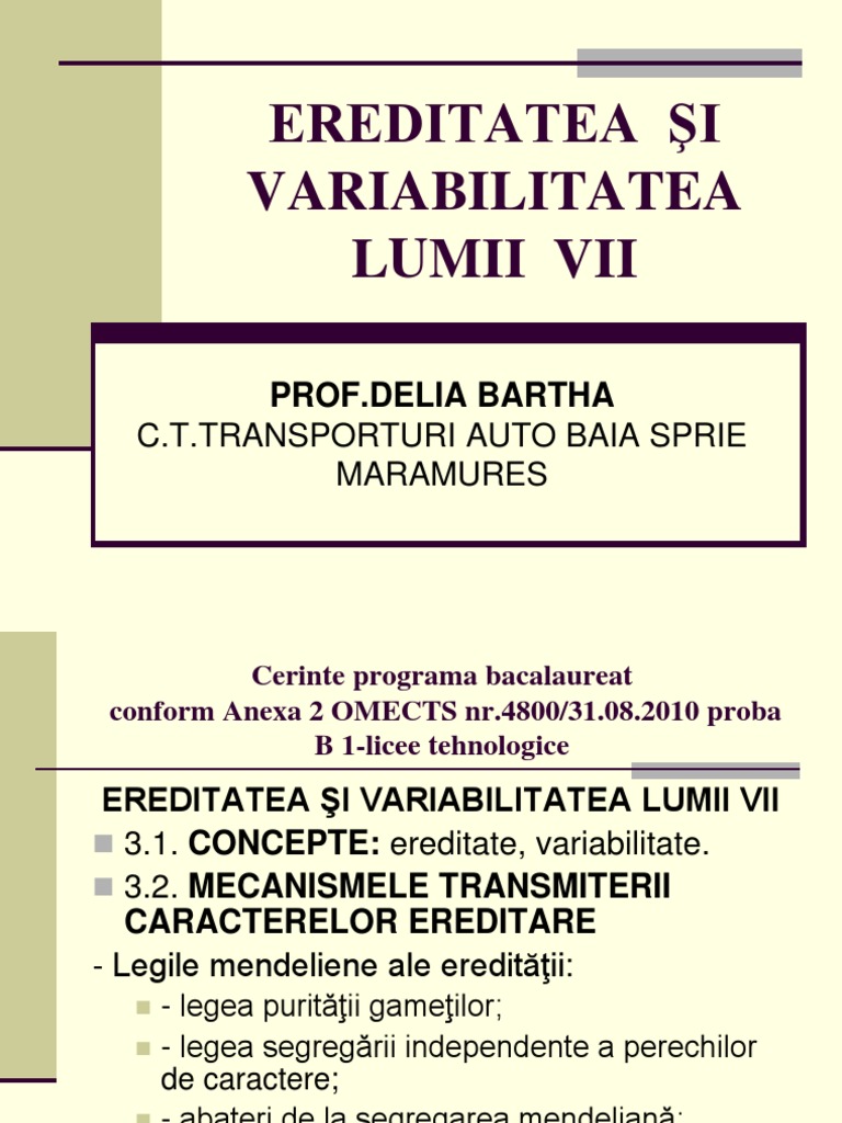 Ereditatea Si Variabilitatea Lumii Vii Ppt