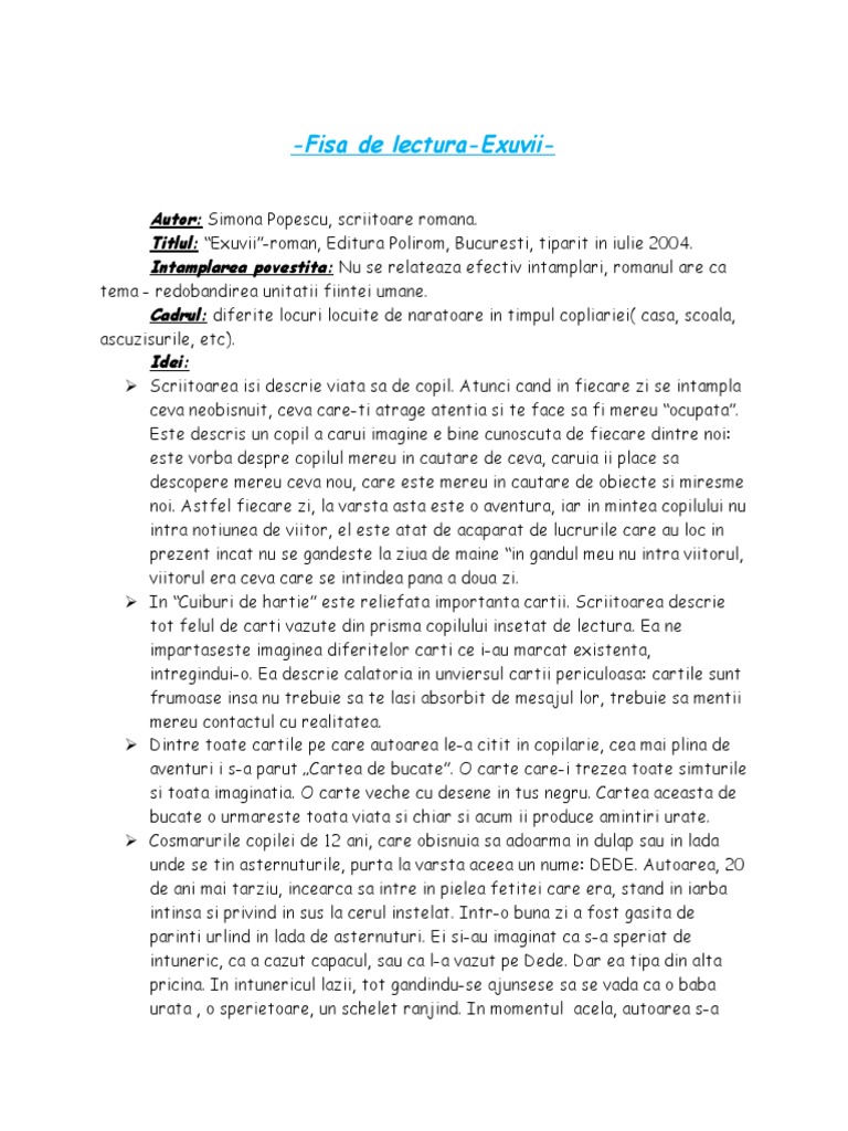 Rezumat Si Comentariu Referat La Exuvii De Simona Popescu Rezumate Cărți Citeste Cărți Online Pdf Caracterizări Referate Si Comentarii Cărți