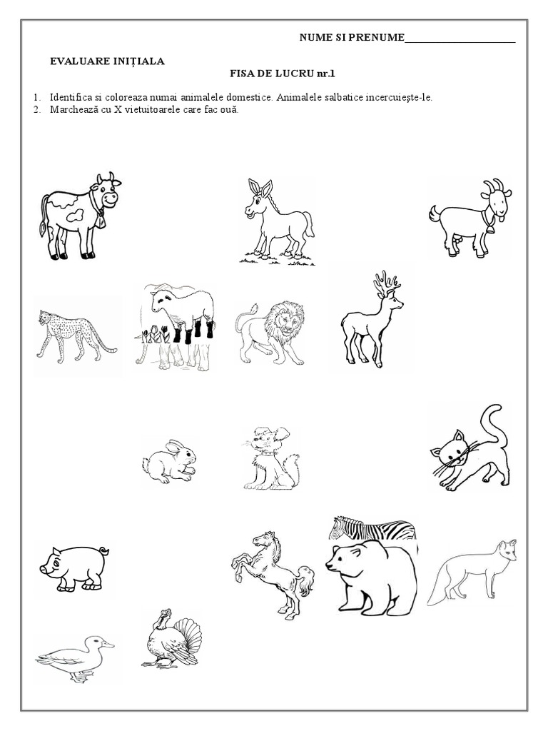 Fise De Lucru Gradinita Fise De Lucru Cu Animale Salbatice Si Domestice