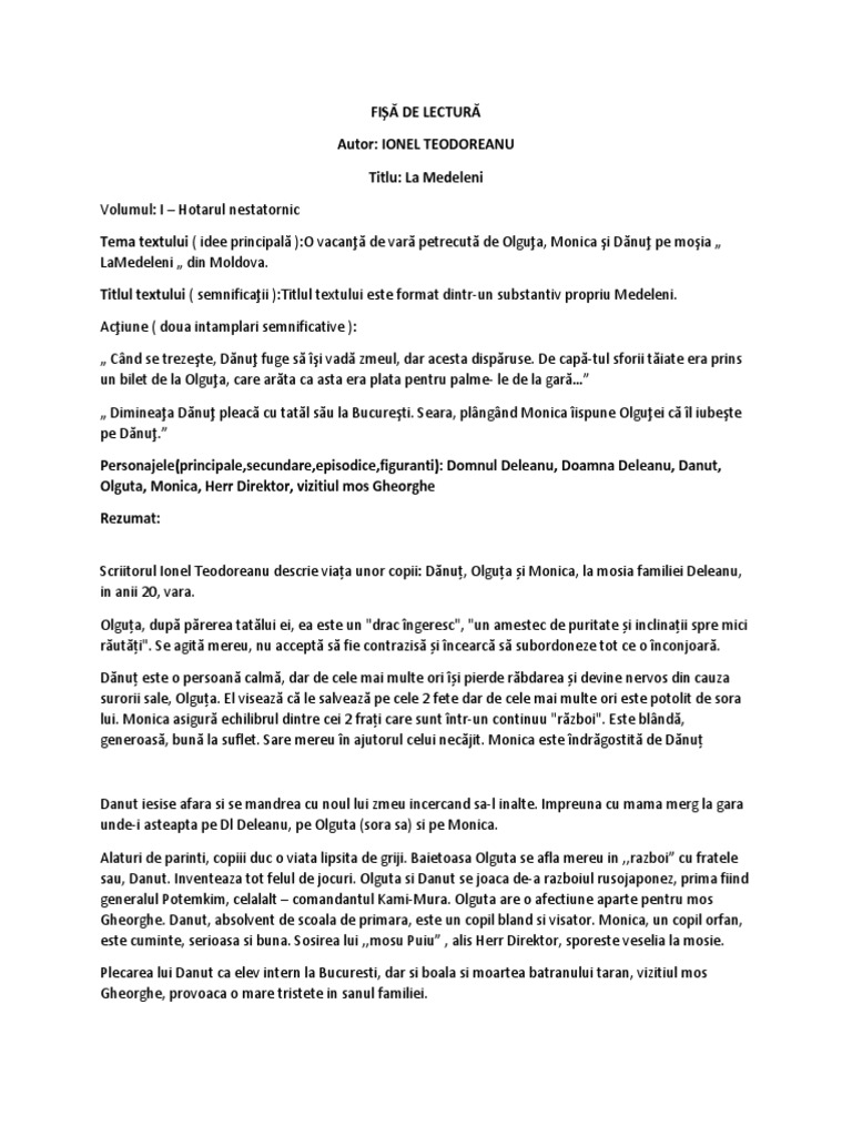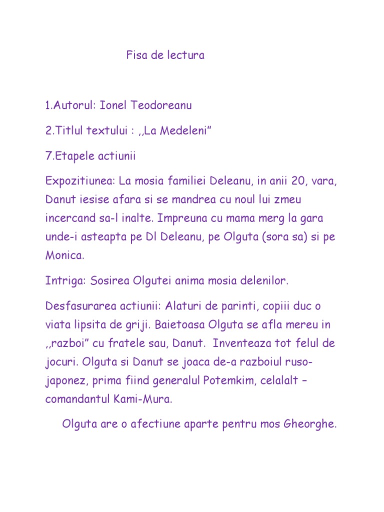 Fisa De Lectura La Medeleni