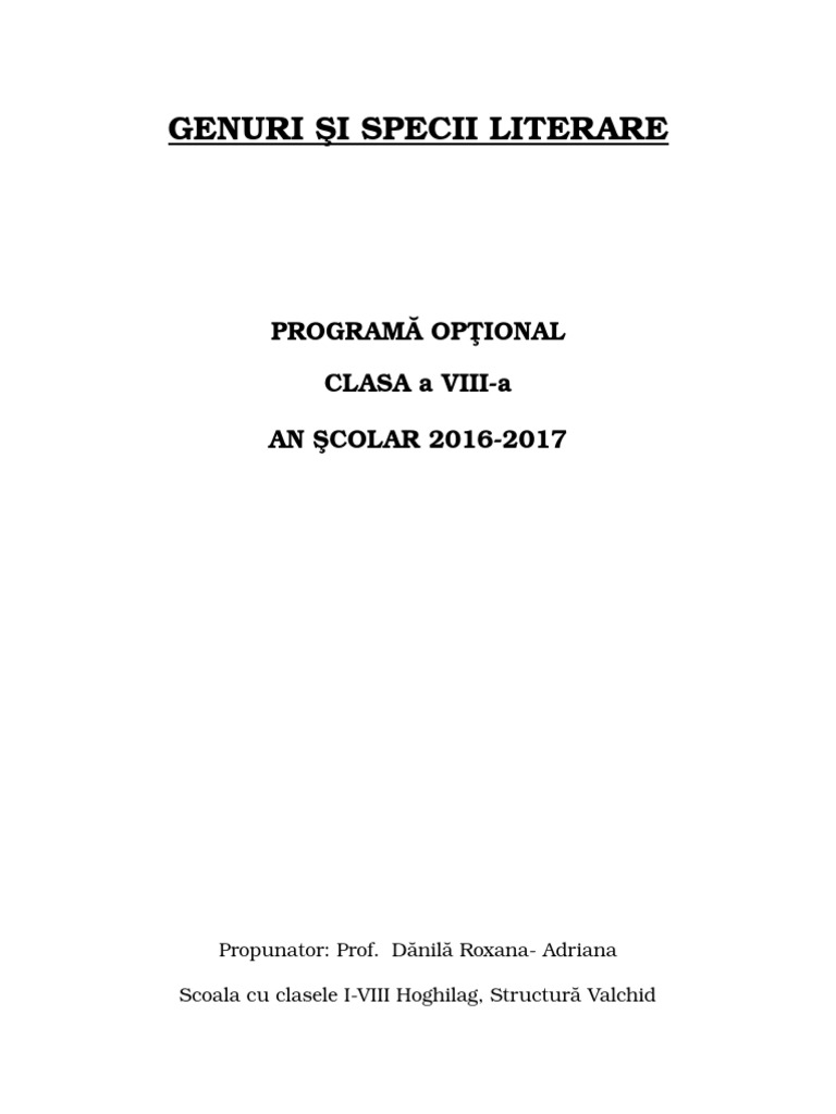 Proiect De Lectie Genul Epic Si Liric Viii Doc Proiect Didactic U0218coala Gimnazial U0102 General Aviator Inginer Gheorghe Negrescu U201d Frunti U0218eni Profesor Course Hero
