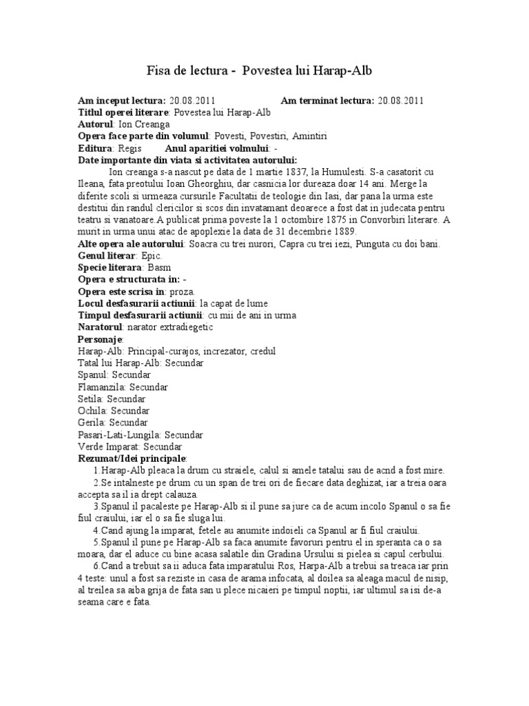 Fisa De Lectura Harap Alb Vnd5q8o6ojlx