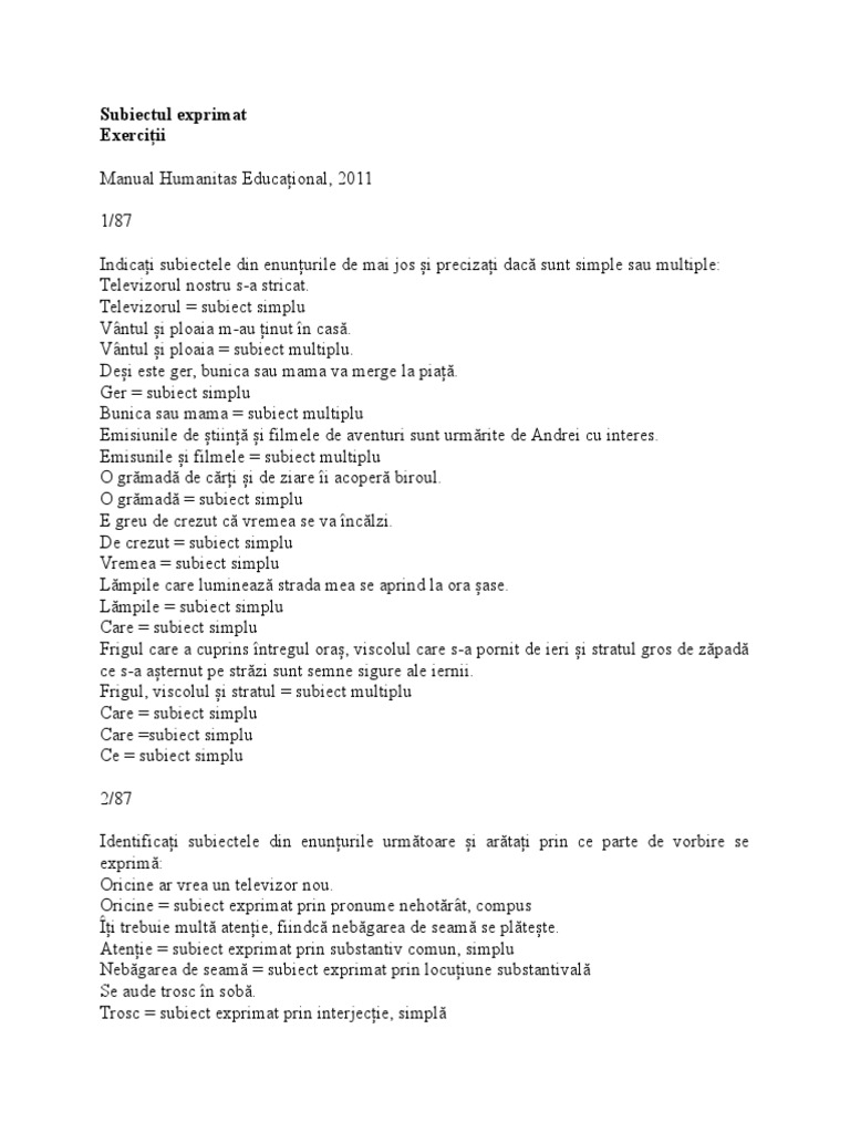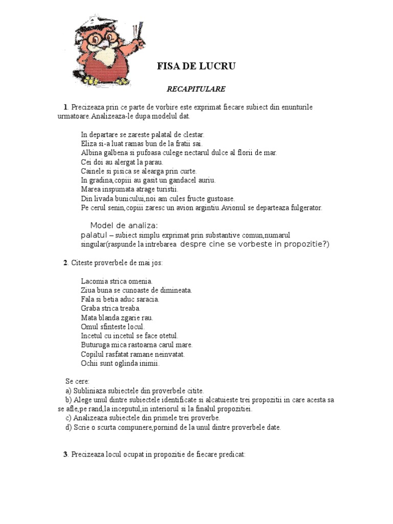 Ajutor Identificati Subiectele Din Enunturile Urmatoare Si Aratati Prin Ce Parte De Vorbire Se Brainly Ro