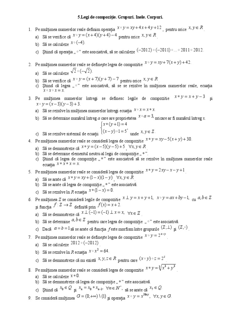 1 Legi De Compozitie Grupuri Inele