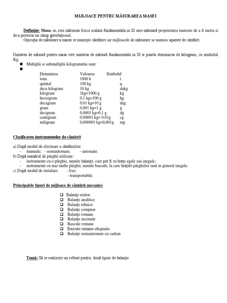 T2mijloace Pentru Masurarea Masei