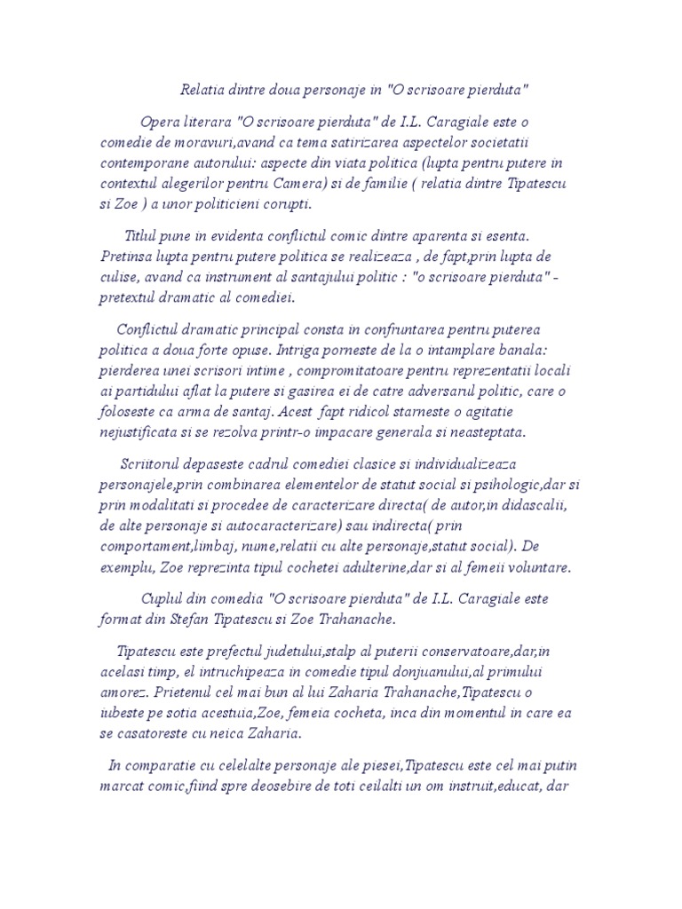 O Scrisoare Pierduta Relatia Dintre Doua Personaje Docx Document