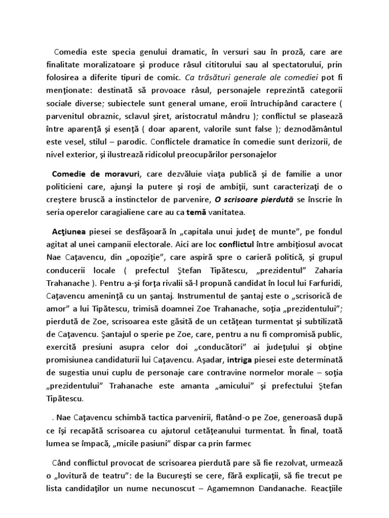 Doc O Scrisoare Pierdută De Ion Luca Caragiale 1 Comedia Elena Balan Academia Edu