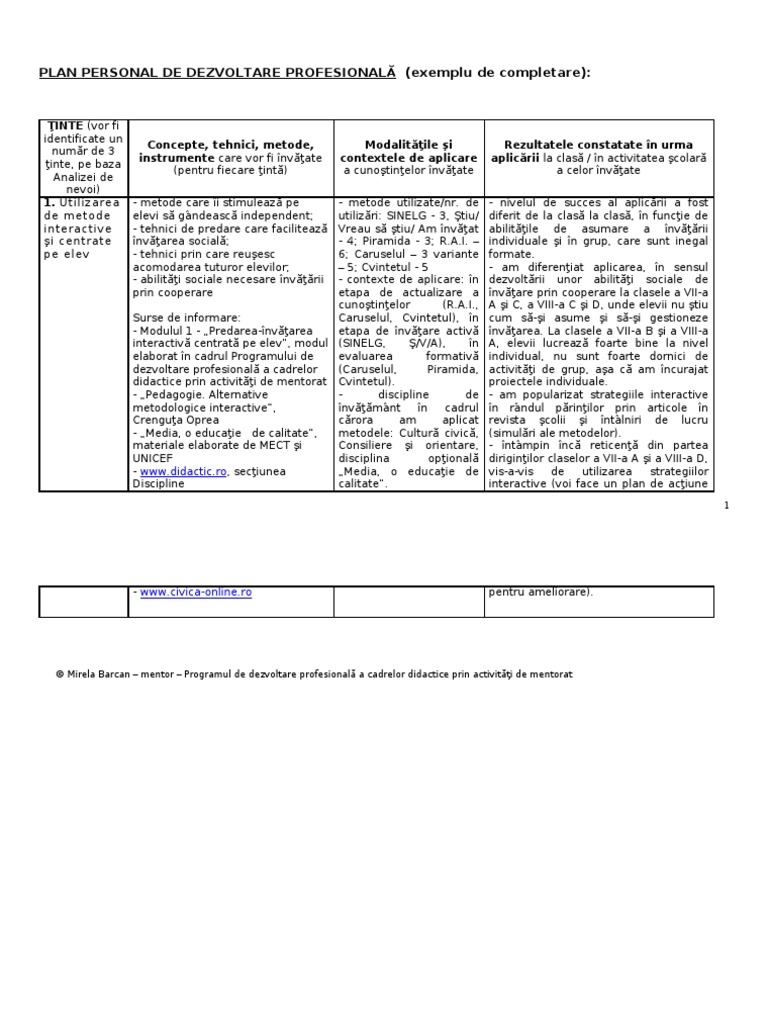 Plan De Dezvoltare Personala Model