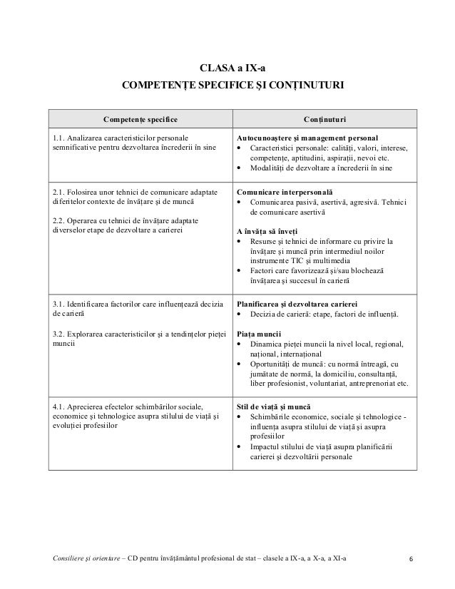 Planificare Consiliere Si Orientare Clasa A Ix A 445566 08 03 2017