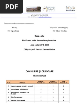 Planificare consiliere clasa a vii a 2019 2020. 0 stele 0 review uri. Planificare consiliere clasa a vii a 2019 2020 programa nouă. Clasa a v a clasa a vi a.