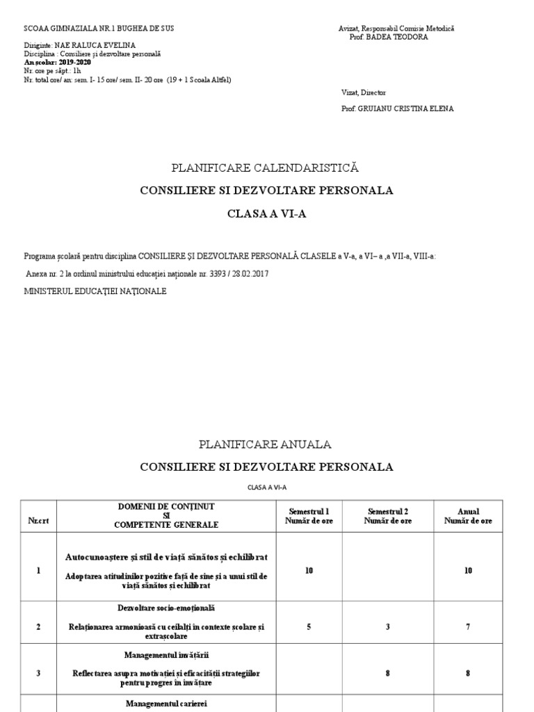 Planificare Clasa A Vi A Consiliere Si Orientare 2019 2020