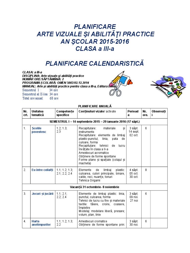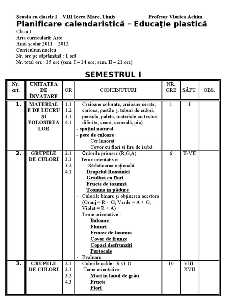 Planificare Educatie Plastica Clasa 6