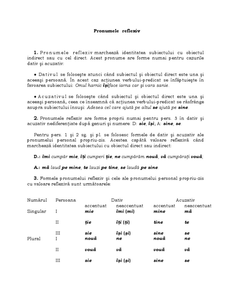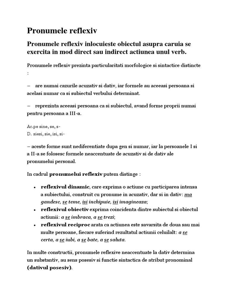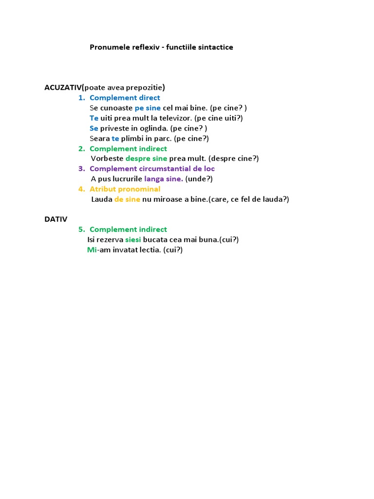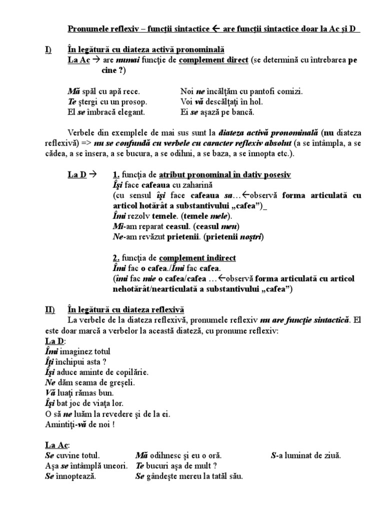Pronumele Reflexiv Functii Sintactice