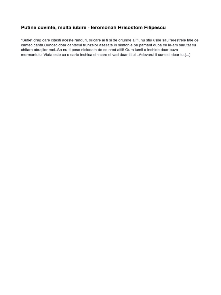 Putine Cuvinte Multa Iubire Ieromonah Hrisostom Filipescu