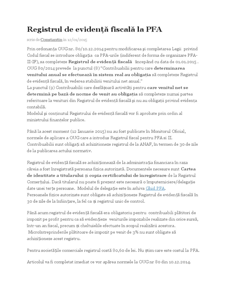 Registrul De Evidență Fiscală Persoane Fizice Pfa Theexperts Ro