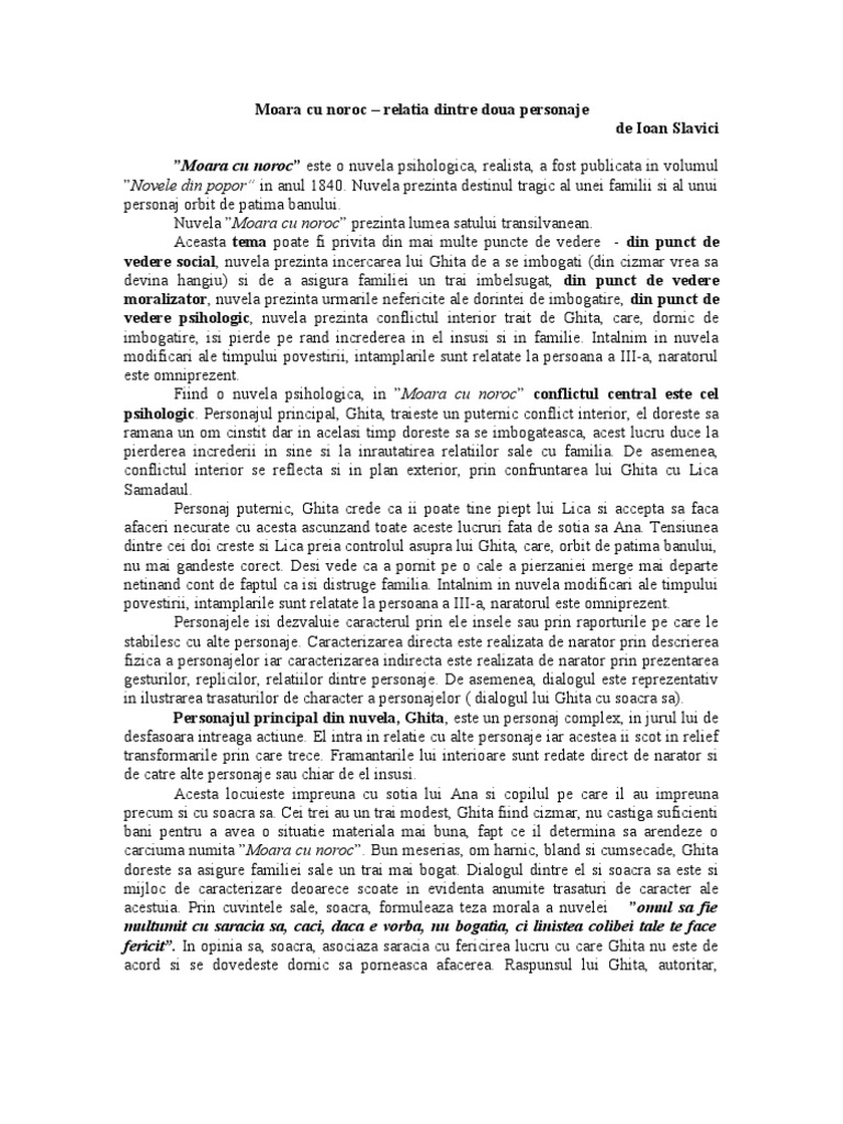 Moara Cu Noroc Relatia Dintre Doua Personaje