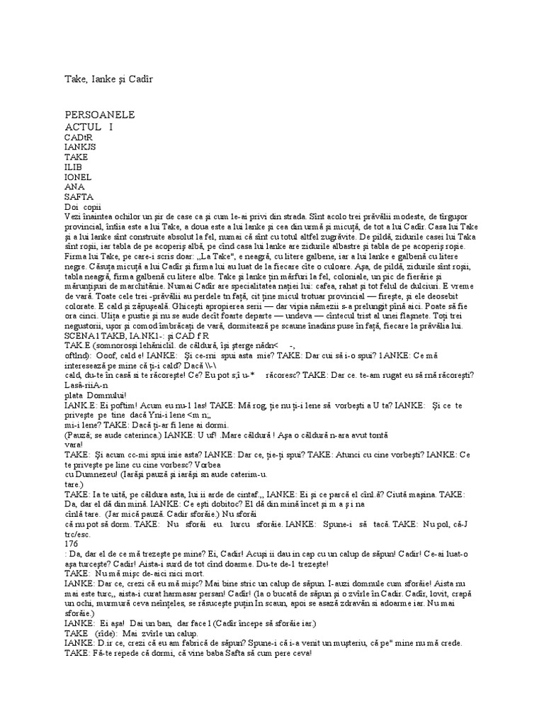 Sunt acolo trei prăvălii. Pdf take ianke si cadar de victor ion popa victor ion popa actul i. La teatrul ateneu am găsit în sfârșit echipa. Vinyl lp 16 rpm mono country.