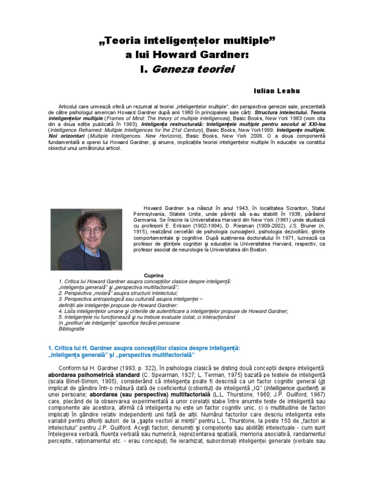 Teoria Inteligentelor Multiple Psihologia Educatiei Studocu