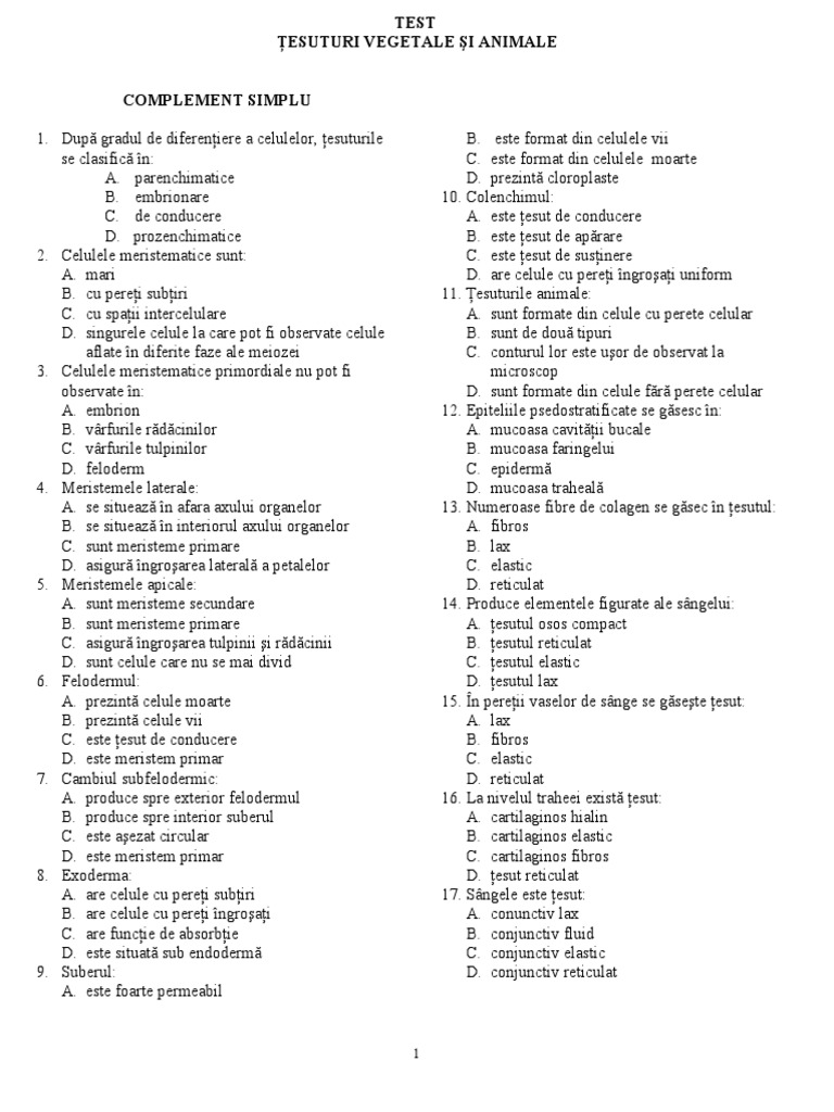 Tesuturile Vegetale Si Animale Kidibot Bătăliile Cunoașterii