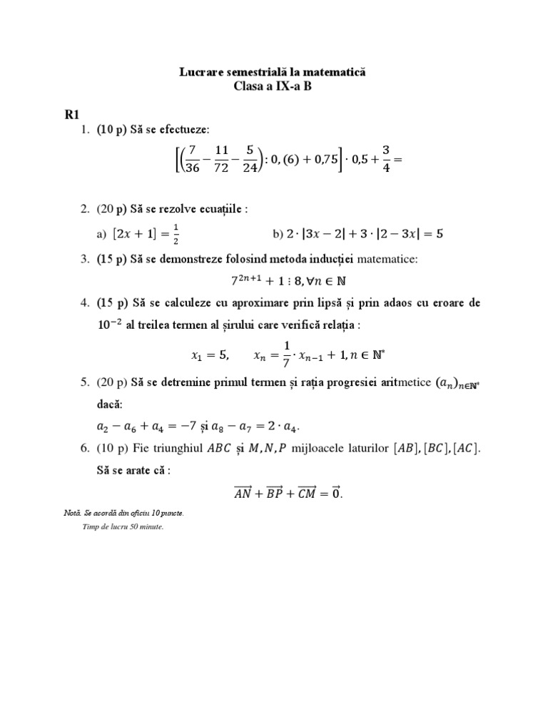 Modele De Teză La Matematică Sem 1 Liceu Clasele 9 12 An școlar 2018 2019 Jitaruionelblog Pregatire Bac Si Evaluarea Nationala 2021 La Matematica Si Alte Materii Materiale Lectii Formule Exercitii Rezolvate Matematica