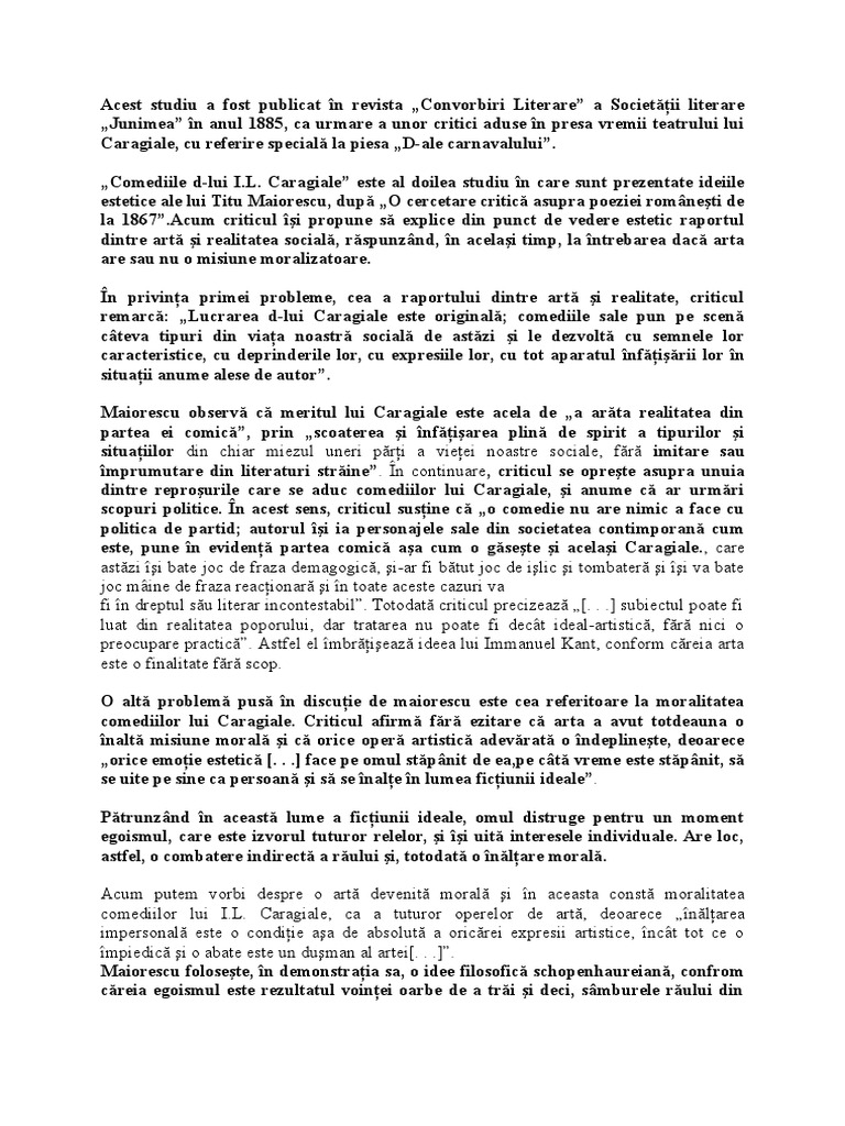 Doc Maiorescu Despre Caragiale Rusu Georgiana Academia Edu