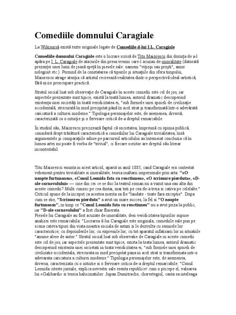 Doc Comediile Lui Caraghiale Mititelu Maria Bianca Academia Edu