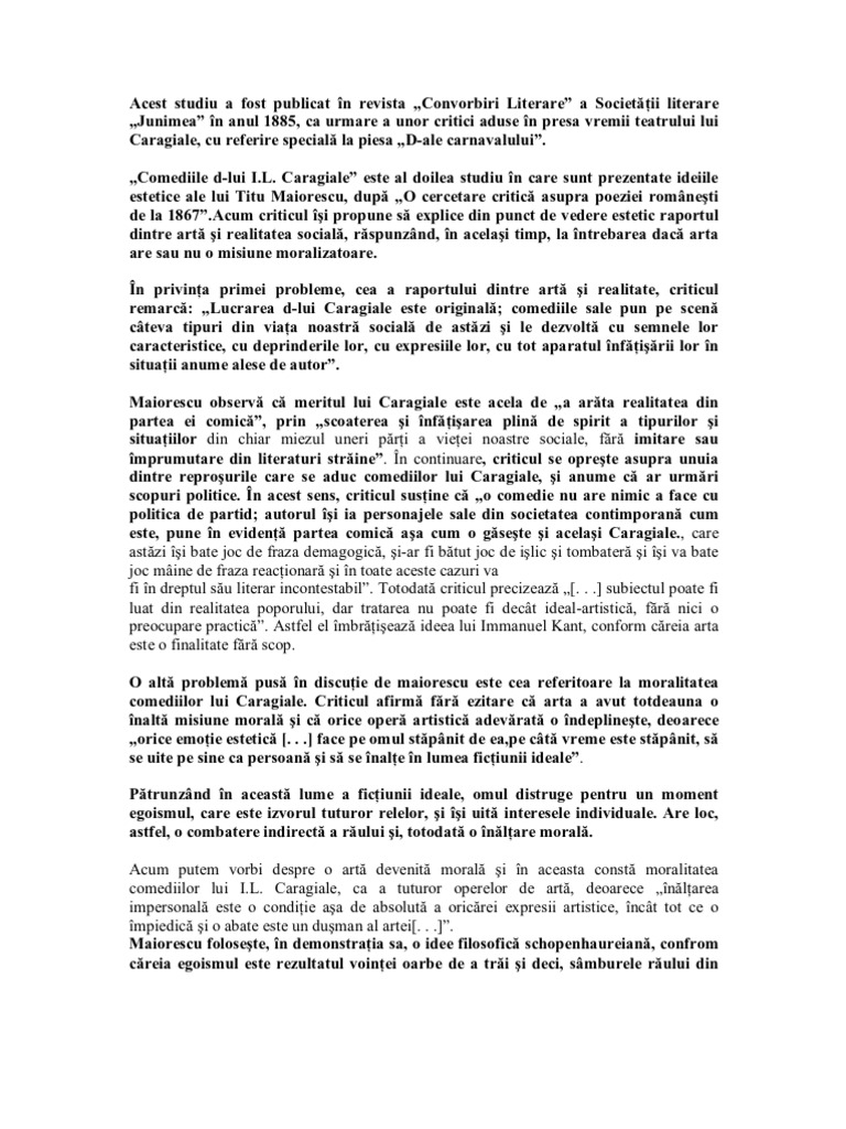 Ideile Estetice Ale Lui Titu Maiorescu Comediile Domnului Caragiale