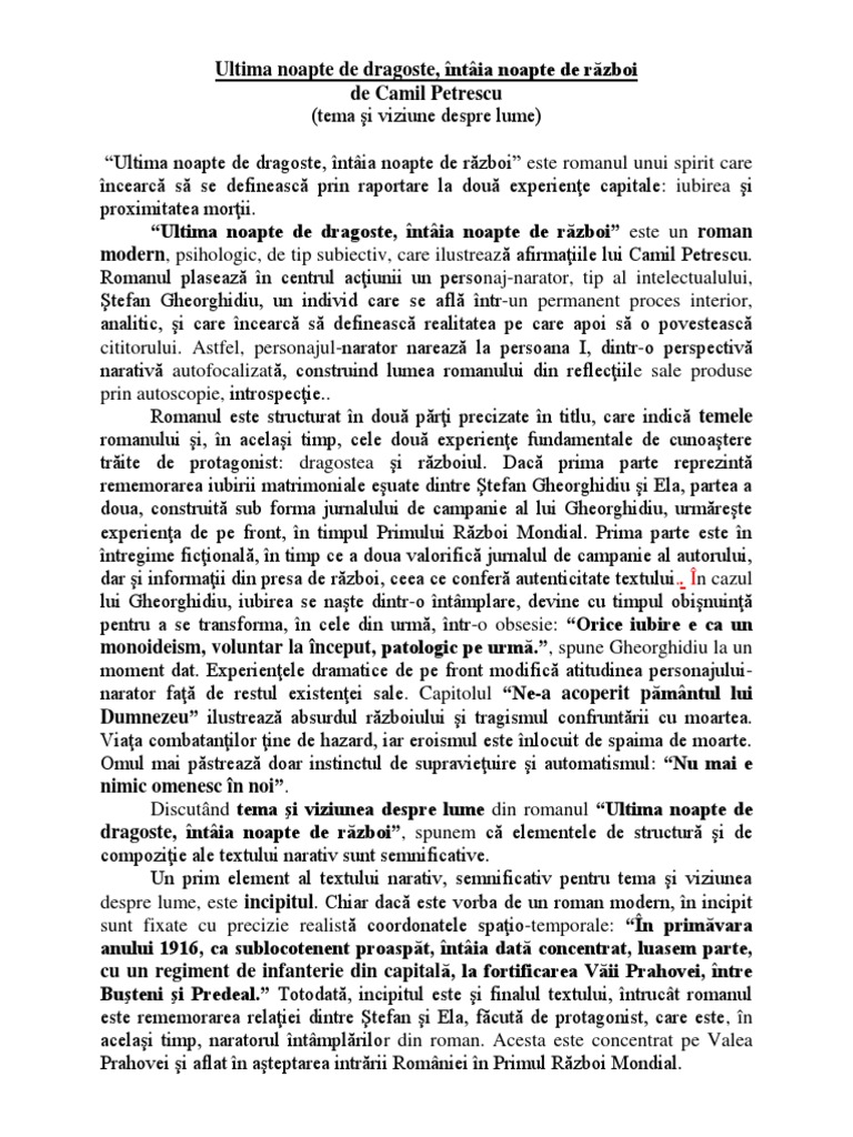 Tema Si Viziunea Despre Lume Ultima Noapte De Dragoste Intaia Noapte De Razboi De Camil Petrescu Sidonia Elena Academia Edu