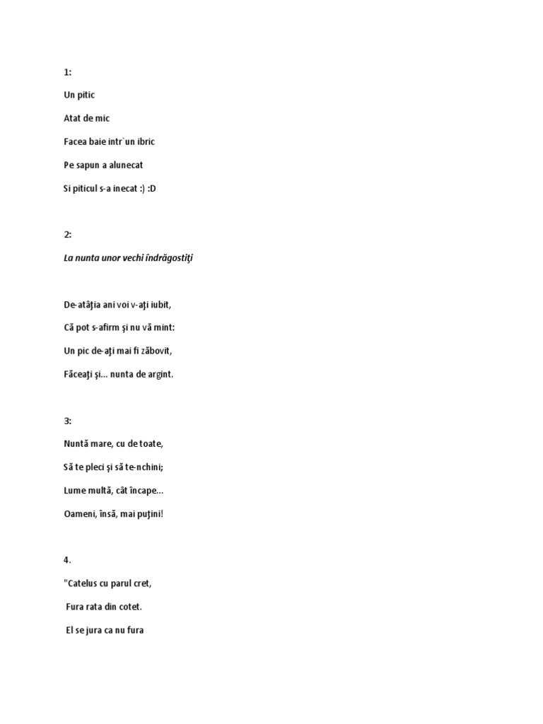 Un Pitic Atat De Mic Făcea Baie Intr Un Ibric De Un Verb S A Mpiedicat Vai Săracu A Visat Cuvinte23