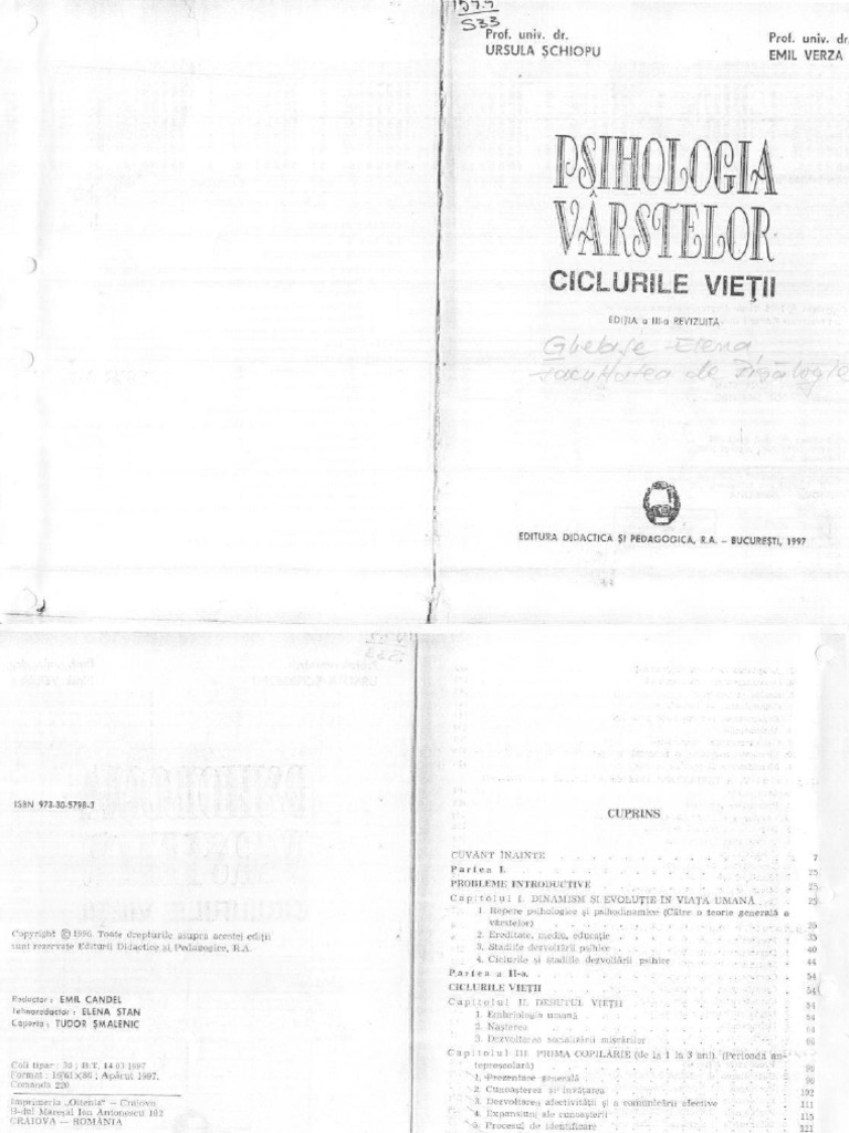 Ursula Schiopu E Verza Psihologia Varstelor Ciclurile Vietii 1997