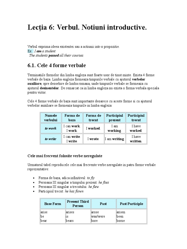 Capitolul 8 Lista Principalelor Verbe Neregulate Si Conjugarea Lor