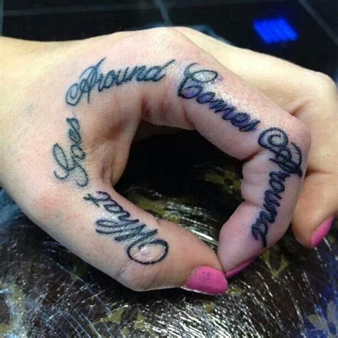 What Goes Around Comes Around I Like The Script And Message But Wouldn T Get The Placement Gorgeous Tattoos Tattoos Finger Tattoos